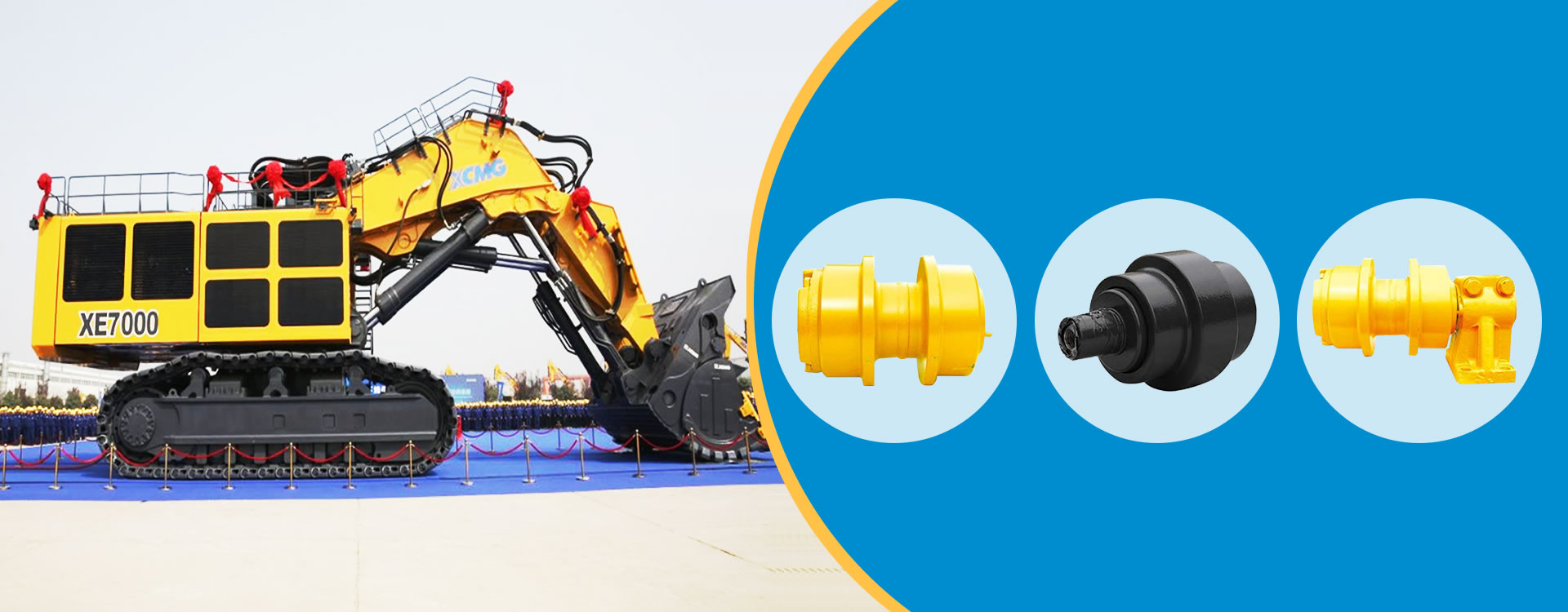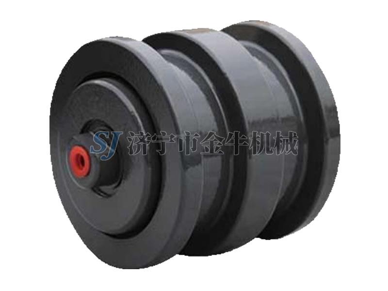 滾輪主要用于輪架下的螺旋支撐機械的質量,并將質量分布在履帶上。同時,它還依靠其滾輪法蘭夾緊鏈軌,防止履帶側向滑脫(脫軌),從而保證機器沿履帶方向'滾動阻力小'移動,以及在泥水中作業時的使用時間。 滾輪